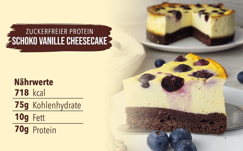 Gönne dir diesen leckeren zuckerfreien Protein-Schoko-Vanille Cheesecake mit Erythrit und Flavor Drops gesüßt. Ein absolutes Muss für alle Cheesecake-Liebhaber, die auf ihre Figur achten möchten!